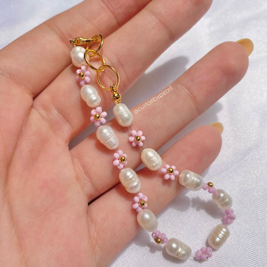 Pulsera de flores y Perlas de río