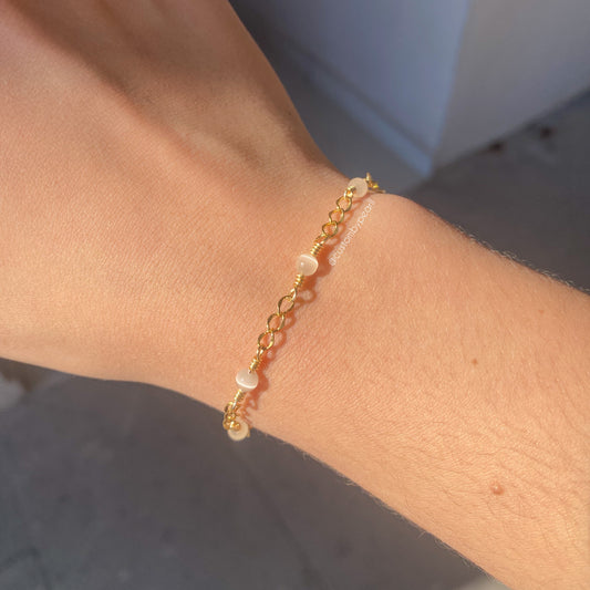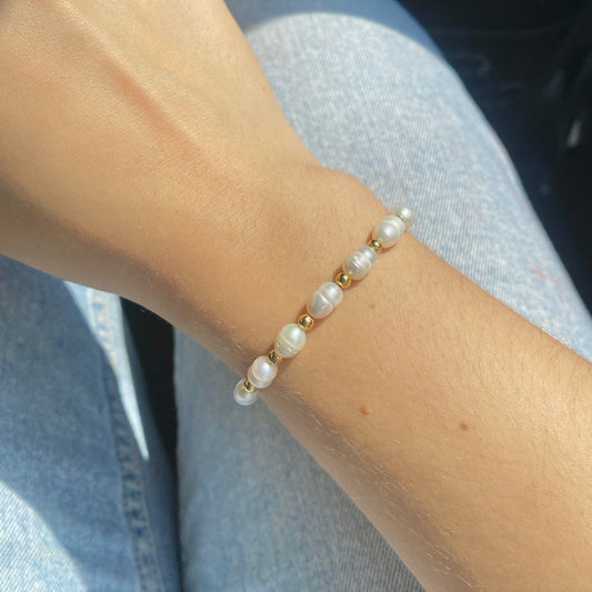 Pulsera de perlas de río y chapa de oro